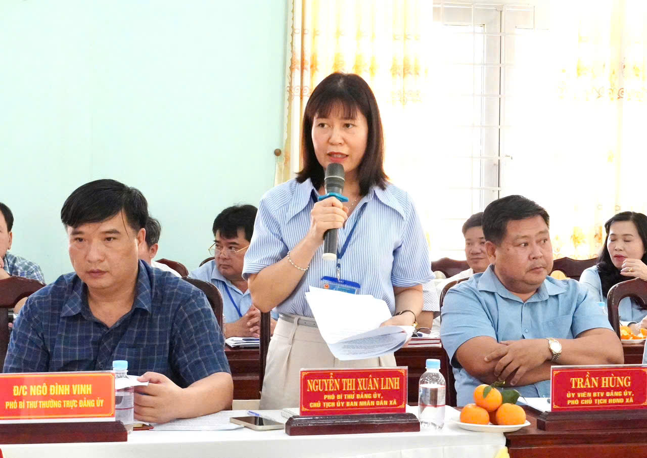 Đồng chí Nguyễn Thị Xuân Linh - Phó Bí thư Đảng ủy, Chủ tịch UBND xã Lộc Hưng báo cáo tình hình triển khai công tác bầu cử trên địa bàn xã