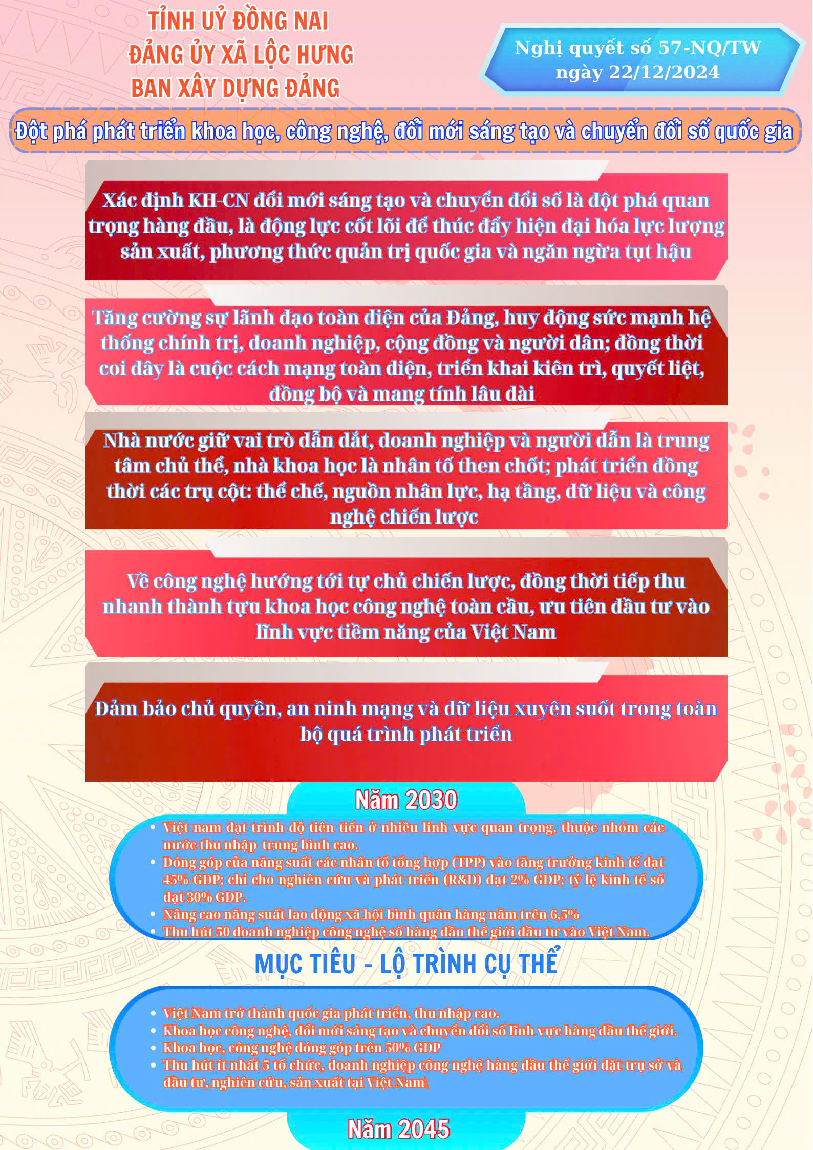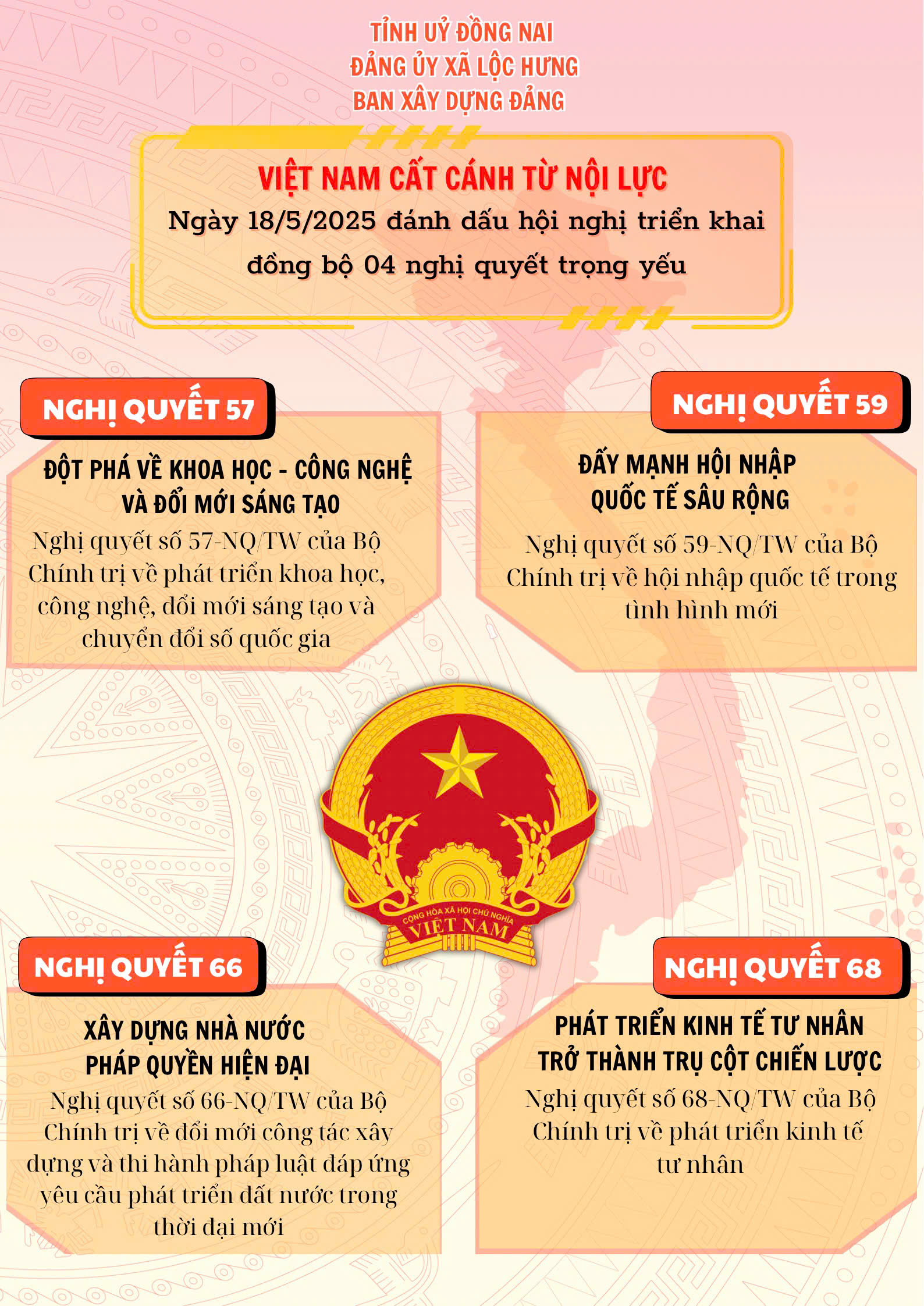 Ban Xây dựng Đảng - Đảng ủy xã Lộc Hưng ra mắt bộ infographic tuyên truyền về Bốn Nghị quyết đột phá - “Bộ tứ trụ cột” đưa đất nước bước vào kỷ nguyên vươn mình.