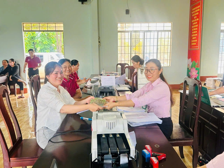 Khách hàng nhận tiền vay từ NHCSXH tại điểm giao dịch Lộc Điền, xã Lộc Hưng