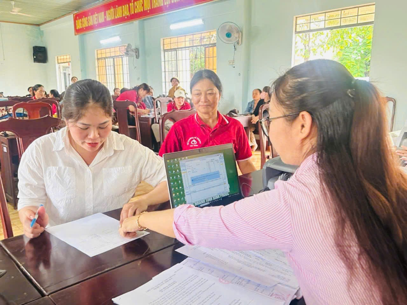 Khách hàng làm thủ tục vay vốn tại điểm giao dịch Lộc Điền, xã Lộc Hưng
