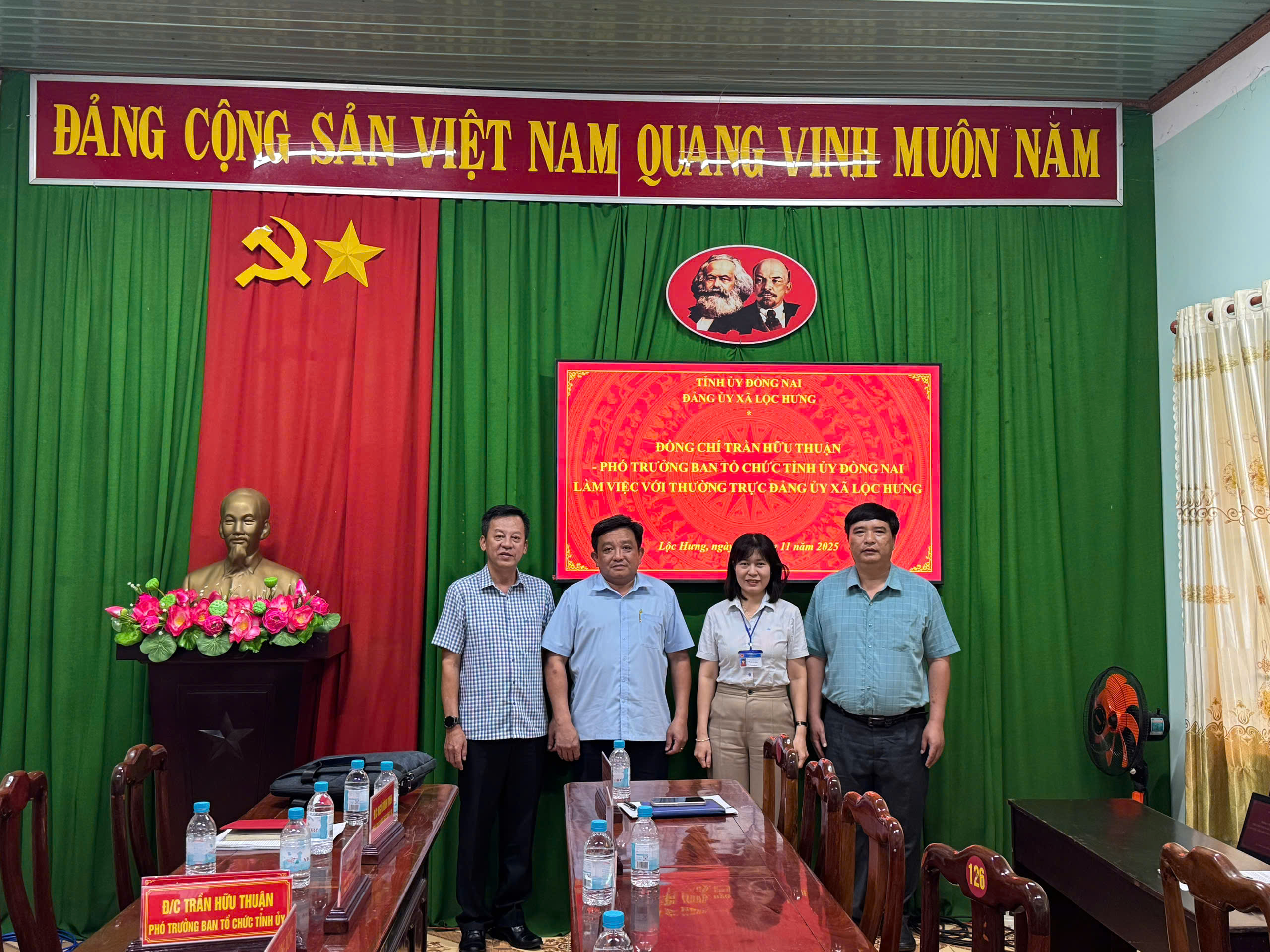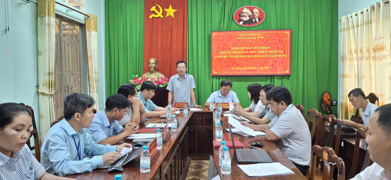 Được sự quan tâm của lãnh đạo Ban Tổ chức Tỉnh ủy Đồng Nai, vào lúc 14 giờ 00 ngày 06/11/2025, đồng chí Trần Hữu Thuận – Phó Ban Tổ chức Tỉnh ủy có buổi làm việc với Thường trực Đảng ủy xã Lộc Hưng về hỗ trợ tháo gỡ những khó khăn, vướng mắc trong công tác tổ chức, công tác cán bộ sau thực hiện chính quyền địa phương 02 cấp.