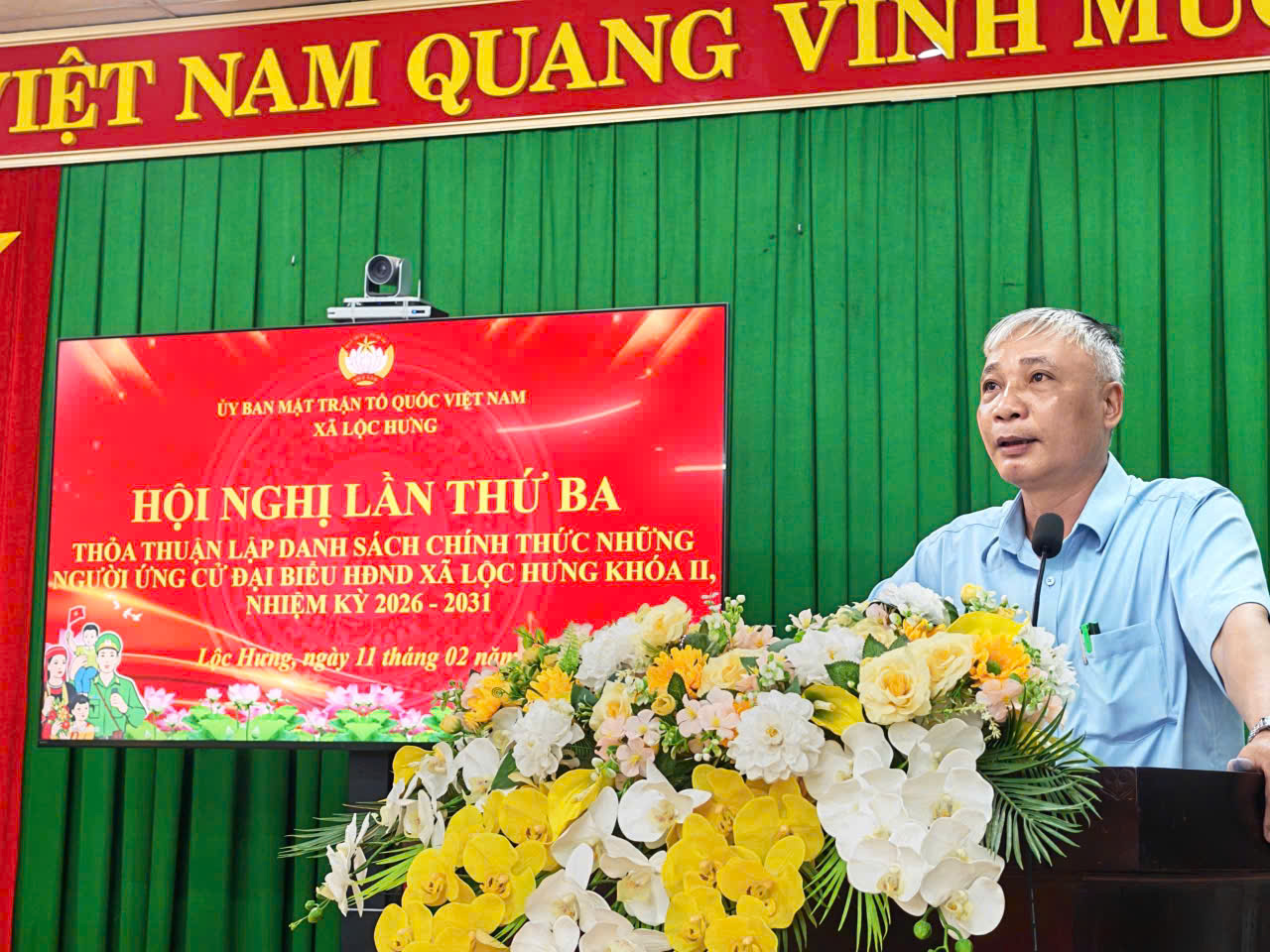 Phát biểu kết luận hội nghị, đồng chí Hà Trương Quyền - Chủ tịch Ủy ban MTTQ Việt Nam xã đề nghị các cơ quan, đơn vị và thành viên Ủy ban bầu cử; các đơn vị bầu cử; tổ bầu cử bám sát kế hoạch đã thống nhất, triển khai đầy đủ các bước tiếp theo của quy trình bầu cử theo đúng quy định của pháp luật, góp phần tổ chức thành công cuộc bầu cử đại biểu HĐND xã Lộc Hưng, nhiệm kỳ 2026 - 2031./.
